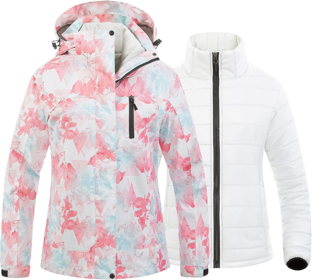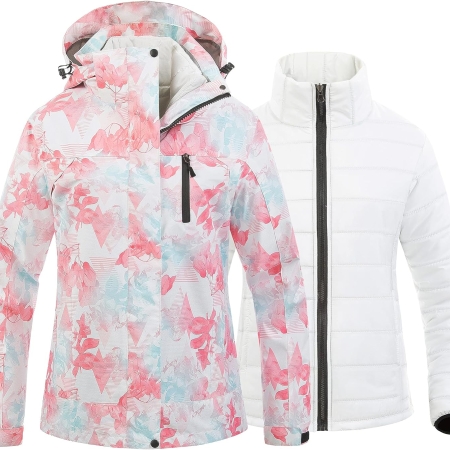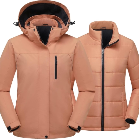 Women’s Hooded Winter Ski Jacket 3 in 1 Waterproof Warm Coat Fleece Mountain Hiking Windbreaker