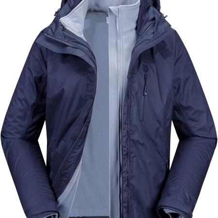 Women’s 3 in 1 Hooded Waterproof Coat Winter Ski Hiking Rain Jacket Softshell Fleece Lined Raincoat Windbreaker