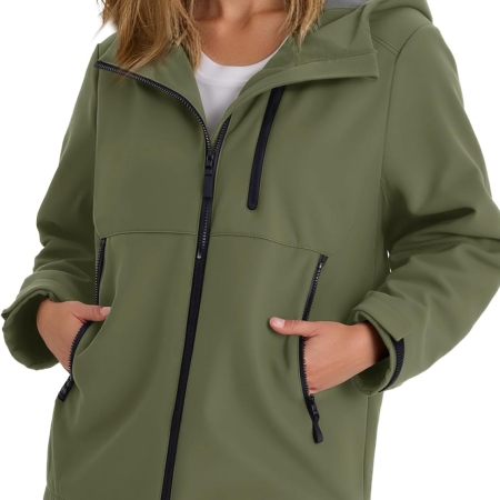 - ❄ Windbreaker Jacket for Women with 3 Pockets: The windproof shell jacket is crafted with high-density lightweight long-lasting woven material to strengthen windbreaking effect. It features adjustable velcro cuffs, fully adjustable storm level hood, waterproof zippers and drawcord hem to seal the wind and rain out and keep the warmth in. There are 1 zippered chest pocket and 2 zippered hand-warmer pockets to carry your cellphone, hat, gloves and other skiing gear.